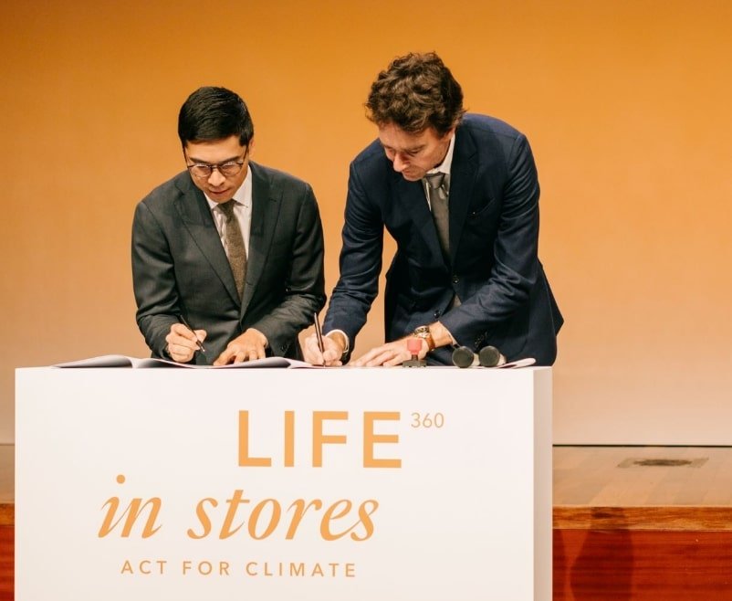 (From left) Mr. Adriel Chan, Vice Chair & Chair of Sustainability Steering Committee, Hang Lung Properties and Mr. Antoine Arnault, LVMH Image and Environment, ink a three-year, pioneering partnership to lead climate and sustainability action in real estate and retail. (Photo credit: Marie Rouge)